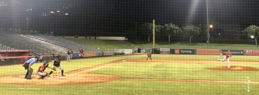 With the latter, the last two years have been something of a boon. In Montana I played in an adult sandlot “league” (sorta like this one, but with even weirder rules and no booze sponsorship) with the best group of people on the planet. When I moved to Arizona, I hoped to continue playing and figured it’d be easy enough to find a team. I ended up on a pretty serious adult squad that in successive seasons won our division’s regular season championship (with me mostly riding the bench) and made the championship game (with me starting most of the year at second base). We played that championship game, much to my kid-like awe, in Tempe Diablo Stadium, Spring Training home of the Angels.